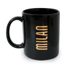 Tasse en céramique de l'AC Milan. Conçue en noir, elle porte le nom et l'écusson dorés, pour que vous sachiez sans aucun doute qui vous encourage.