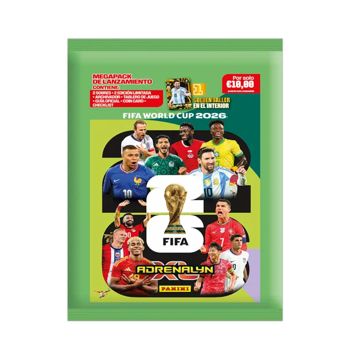 Le Megapack de Lancement de la magnifique collection de Trading Cards FIFA WORLD CUP 2026™ Adrenalyn XL™ vous permet d'obtenir en exclusivité tout ce qui suit :