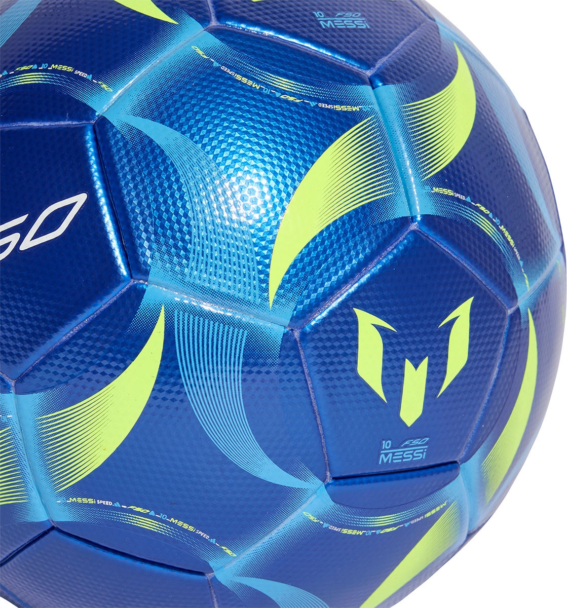 Le ballon adidas de Leo Messi est parfait pour les fans du numéro 10 de l’Albiceleste. Avec des détails verts et jaunes, le logo de Messi et les trois bandes se détachent sur sa base bleue, apportant du style à chaque touche.