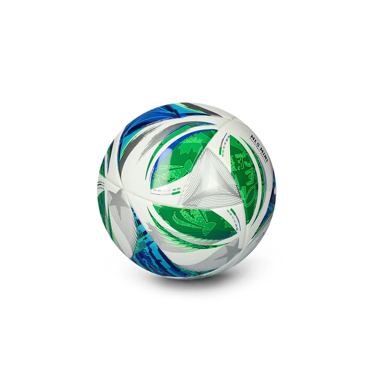 La Major League Soccer célèbre son 30e anniversaire avec les ballons de cette saison. Un design plein de tons blancs, verts et bleus qui commémore le logo initial présent de 1996 à 2014.