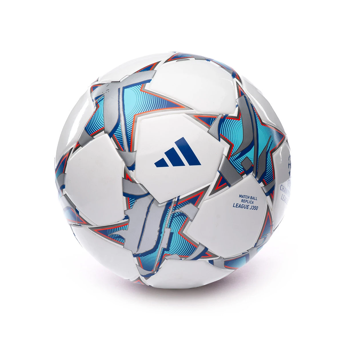 Ballon UEFA Champions League J350 de la marque adidas de couleur White-Bright Cyan