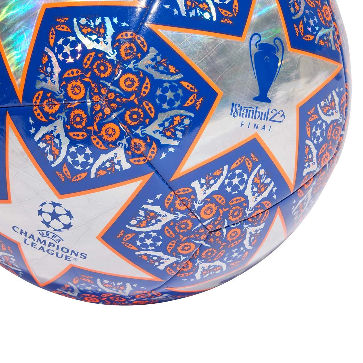 En 2023, les étoiles s'alignent à Istanbul. Ce ballon de football UCL d'adidas s'inspire du ballon officiel de la phase à élimination de l'UEFA Champions League. Il combine des imprimés audacieux et des détails holographiques avec une surface cousue à la machine et une vessie en butyle très résistante à l'usure pour vous permettre de jouer encore et encore.
