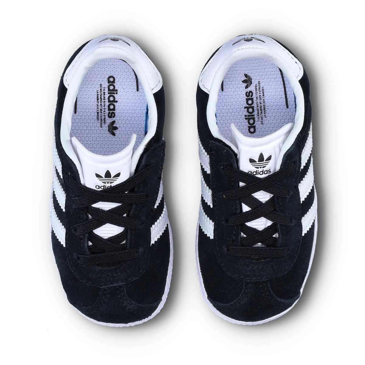 Préparez votre enfant à faire ses premiers pas dans le style street iconique des chaussures adidas Gazelle pour bébé ! Elles s'inspirent du style du modèle de 1991, qui a fait son retour en tant que tendance streetwear. Elles sont dotées d'une tige en daim et des trois bandes emblématiques qui ornent les côtés. Les lacets élastiques permettent de les enfiler et de les retirer facilement, et de les adapter aux petits pieds de votre enfant. Habillez votre enfant avec le style inimitable de la Gazelle et donnez-lui sa première leçon de mode !