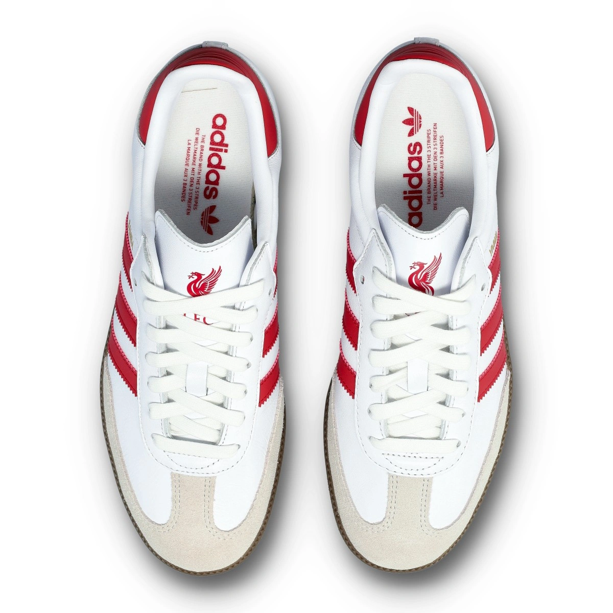 Créée pour que les supporters des Reds se vantent du style footballistique sur le terrain. La chaussure Samba, une icône des chaussures adidas, est célèbre pour son empeigne en cuir souple et sa pointe en daim en forme de T. Cette paire a été confectionnée dans les couleurs du second maillot du Liverpool FC et incorpore un écusson de l’équipe sur le renfort du talon, Pour qu’il n’y ait aucun doute sur votre équipe favorite.
