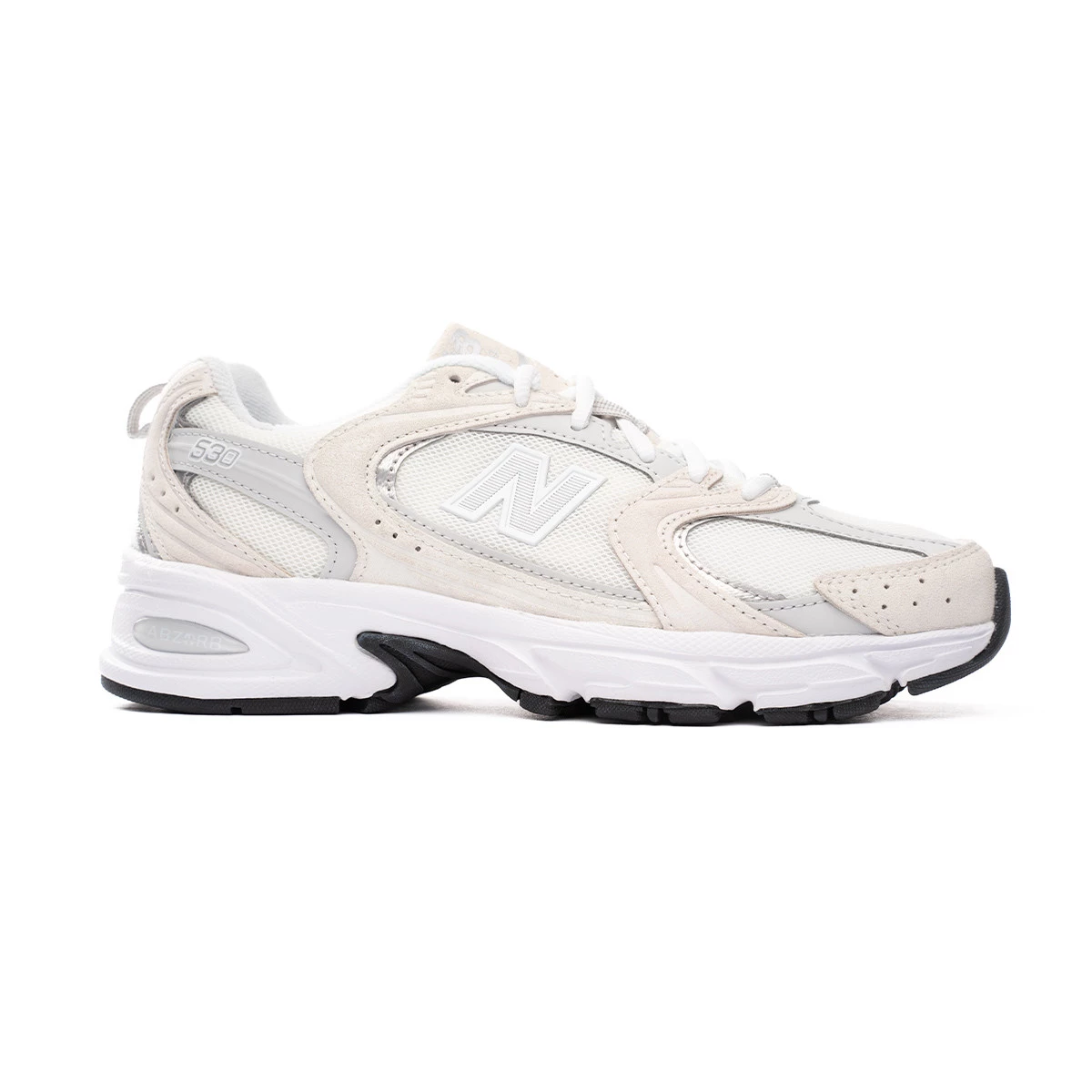 Les chaussures New Balance 530 Made in UK, avec le cuir de lameilleure qualité et fabriqués a Flimby, au Royaume Uni. Tige en coloris noir et blanc. Semelle intérmediaire en EVA  avec ENCAP et C-CAP, pour un amorti unique . Languette brodée