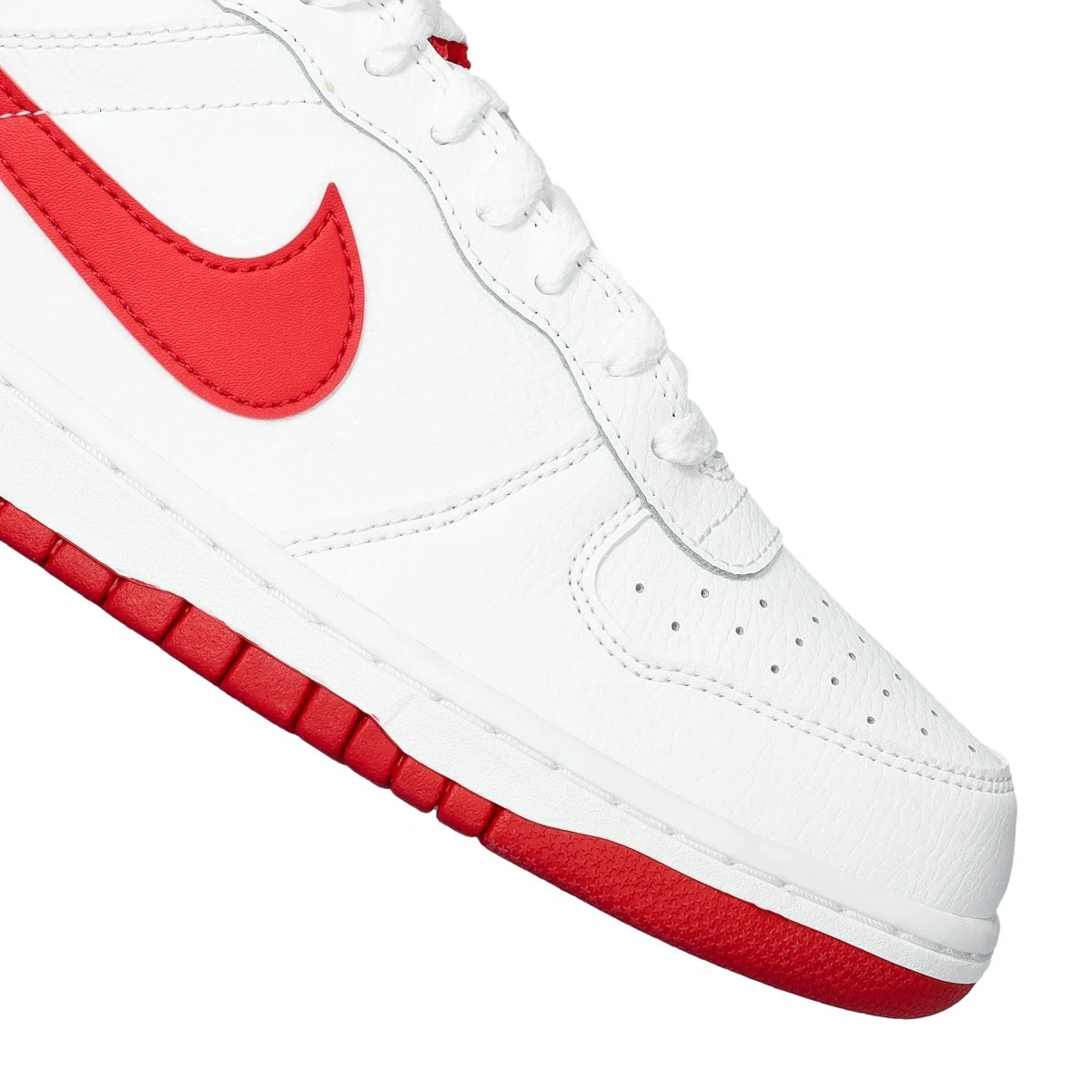 La Nike Big Low offre un look élégant avec une tige en cuir et des superpositions de surpiqûres.