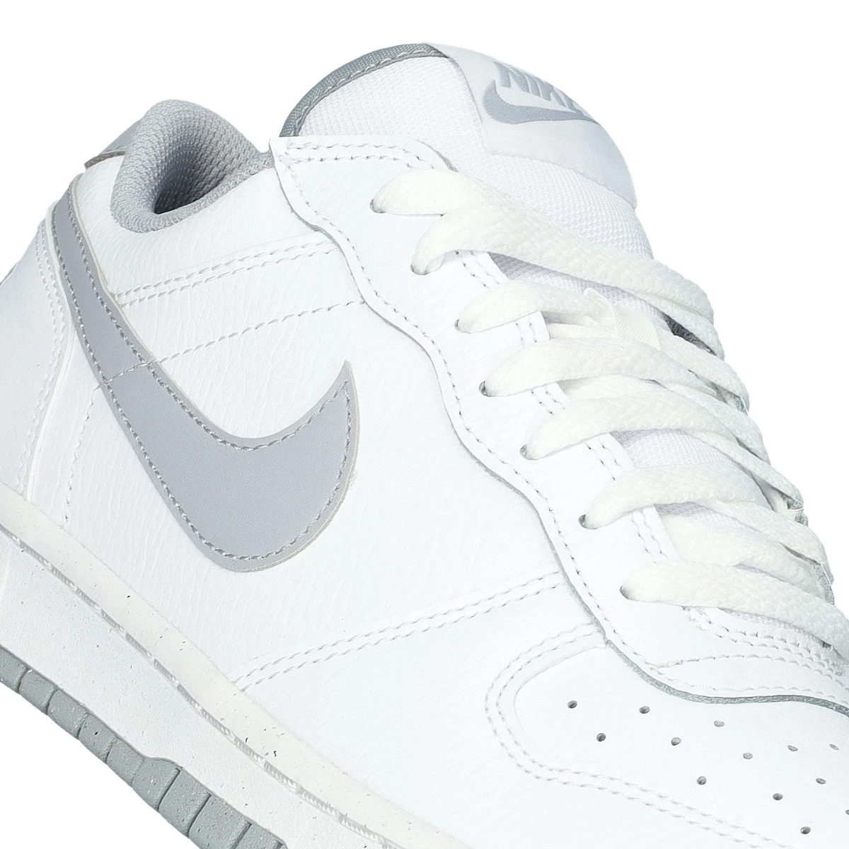 La Nike Big Low offre un look élégant avec une tige en cuir et des superpositions de surpiqûres.