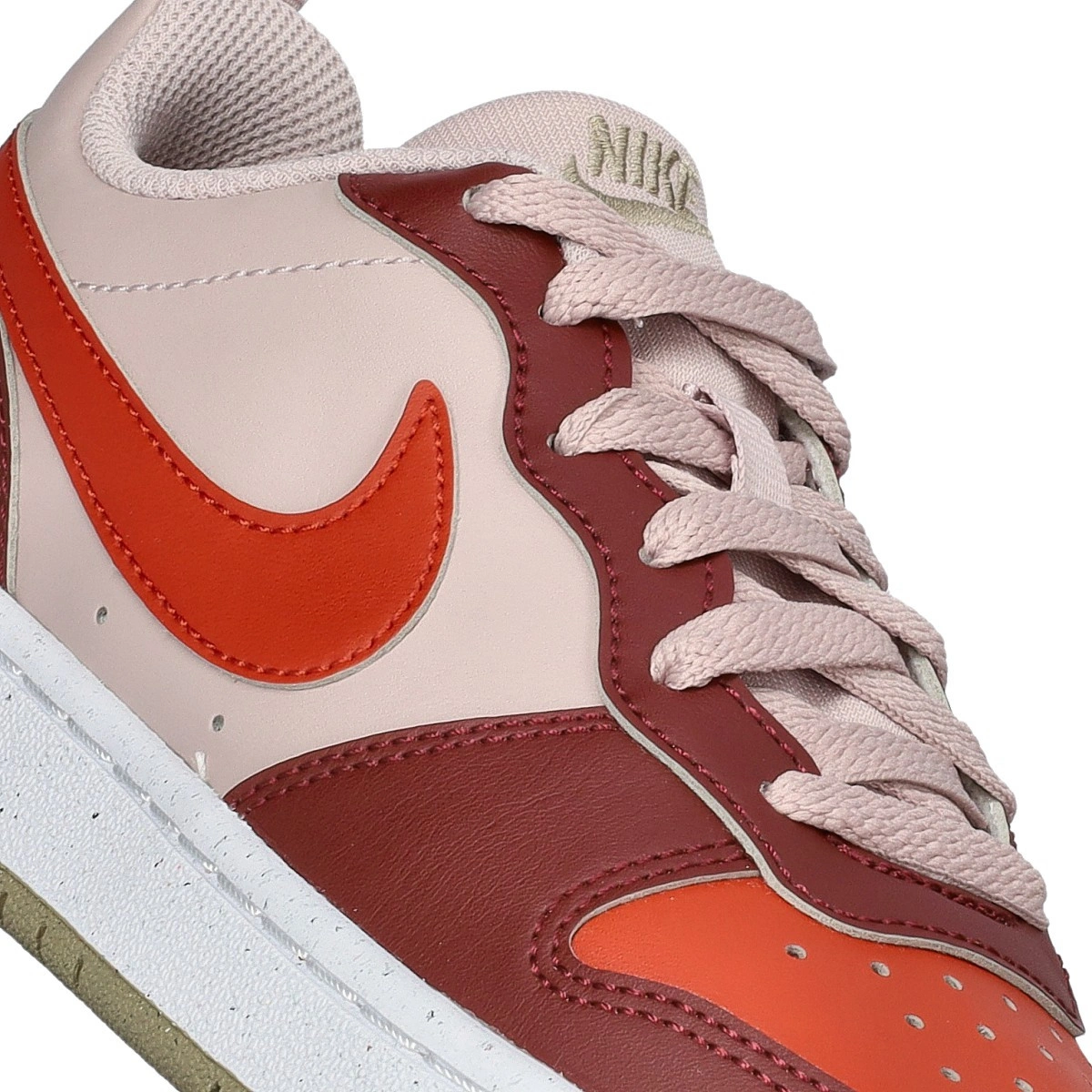 Présentation de la nouvelle Nike Court Borough Low Recraft. La zone des orteils et le médio-pied redessinés vous offrent plus d'espace sous vos pieds pour courir, sauter et jouer plus longtemps.
