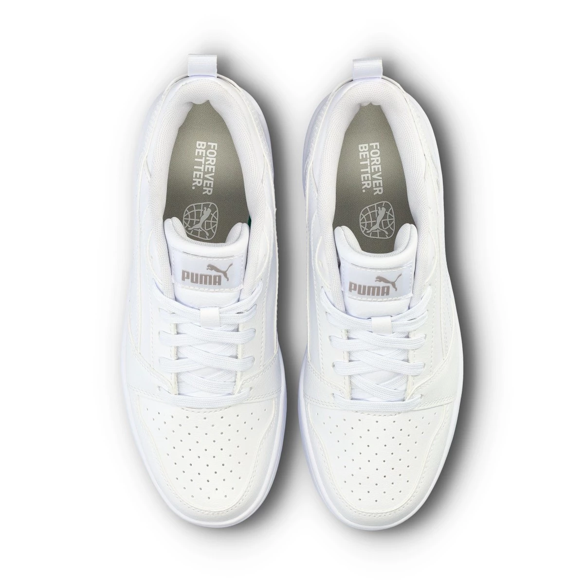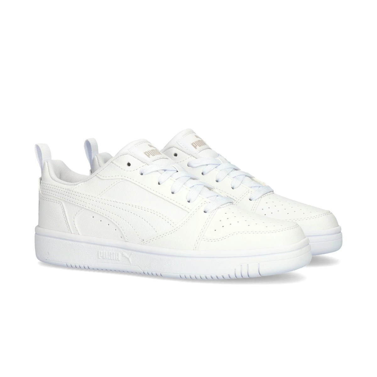 Inspirée par la culture pop classique et le style basket-ball, la Rebound v6 Low est un modèle rétro décontracté qui capture l'essence du classique, avec une tige en cuir synthétique souple et la bande PUMA classique dans un design contrasté, ainsi que le logo PUMA. Revenez aux classiques avec ces superbes baskets. La semelle SoftFoam+ offre un amorti supérieur et un confort optimal à chaque étape de votre journée.