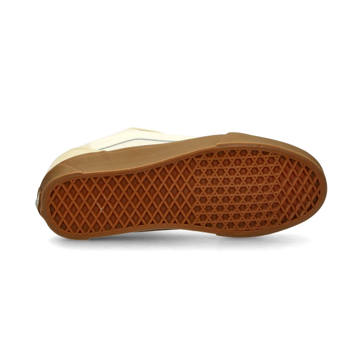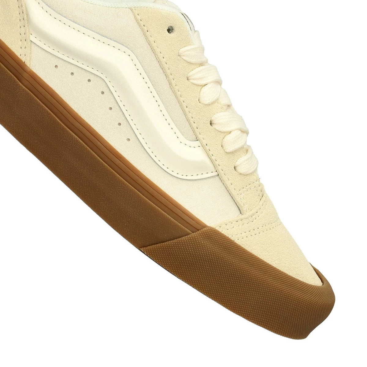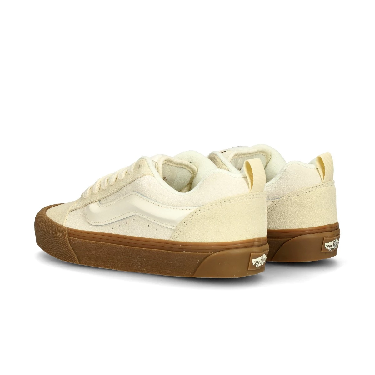 La Knu Skool est un modèle réédité des années 90. Vans conserve l'esthétique "Off The Wall" avec son emblématique Sidestripe présentant la nouveauté d'un matelassage 3D, mis en valeur par un look large et épais. Elle présente une silhouette basse, une empeigne en daim durable et un design avec une languette et un col rembourrés.