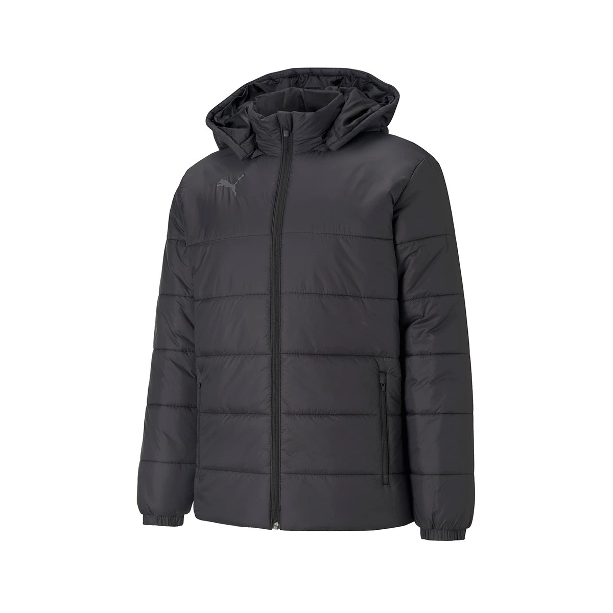 Veste de la ligne TeamLIGA de Puma. Ce vêtement présente un design matelassé, une capuche et des poches zippées sur les côtés.