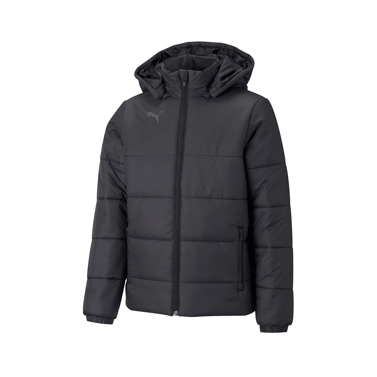 Veste de la ligne TeamLIGA de Puma. Ce vêtement présente un design matelassé, une capuche et des poches zippées sur les côtés.