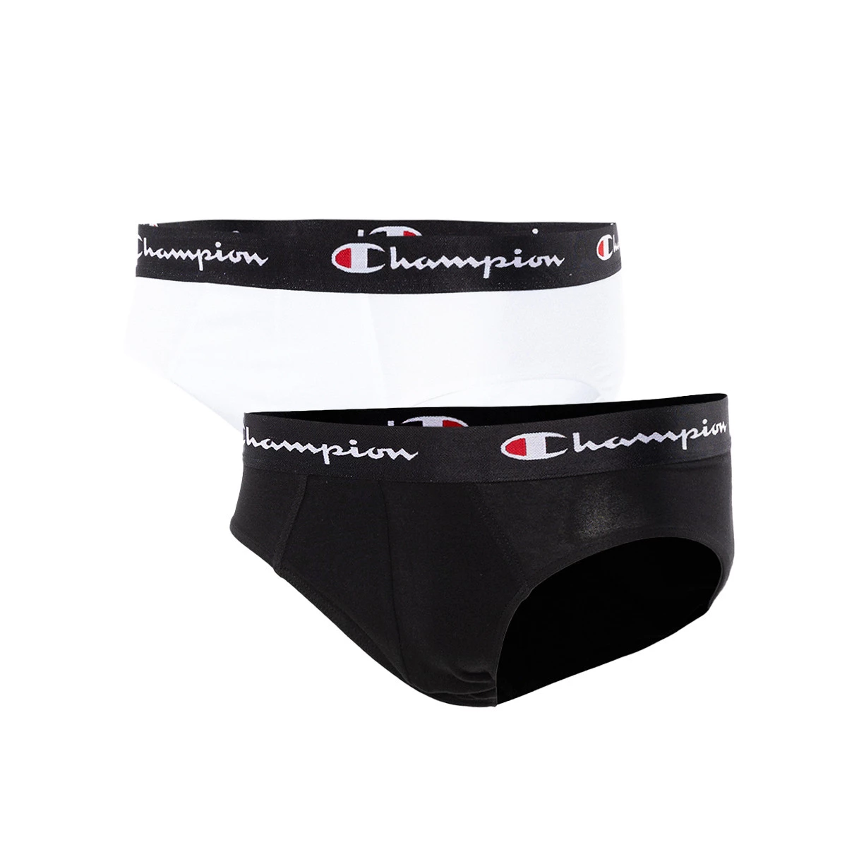 Slip Champion. Mélange de coton et spandex. Taille élastique et ajustement ajusté. 2 articles par paquet.