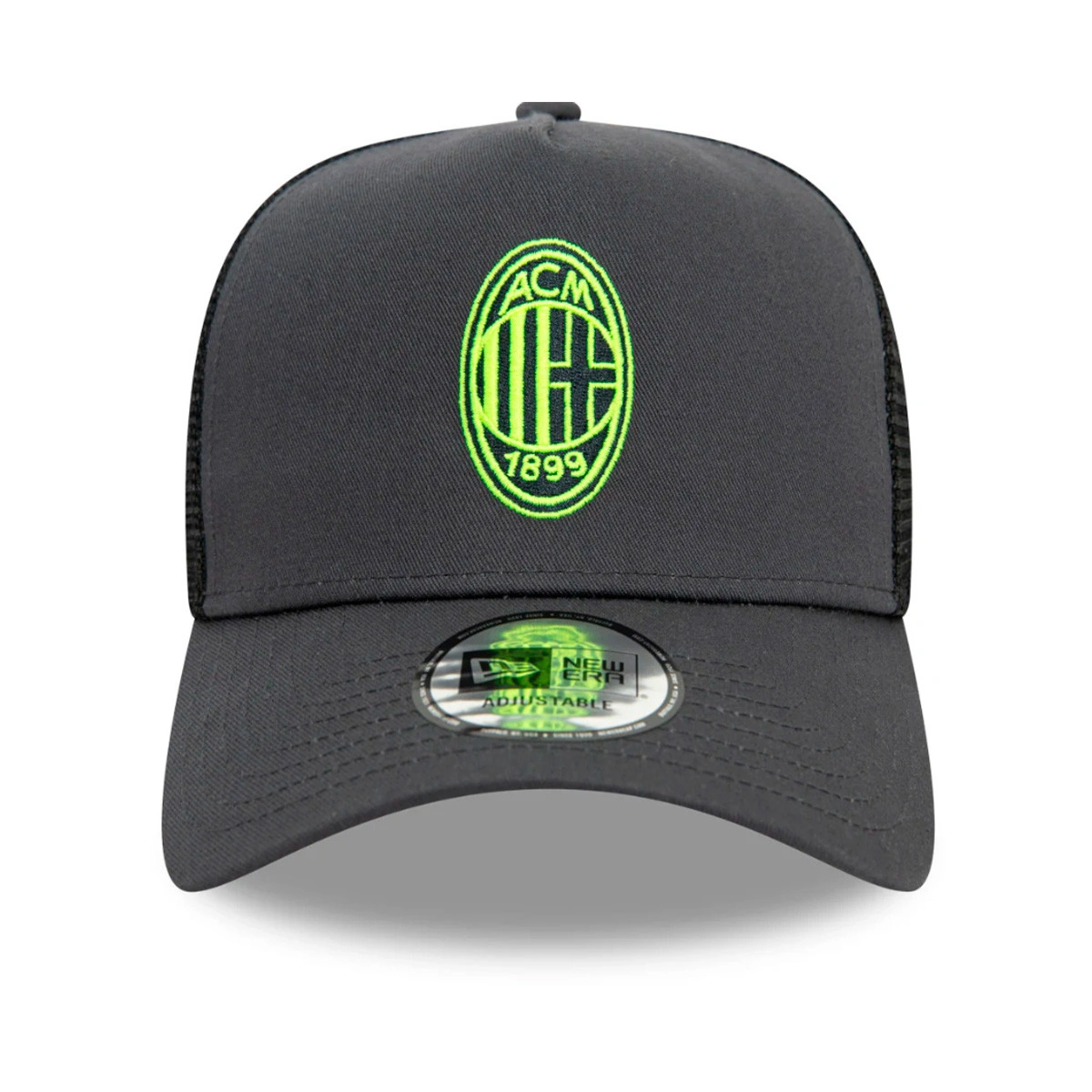 La casquette AC Milan 9FORTY Trucker de New Era est l'accessoire parfait pour les véritables supporters du club rossonero. Avec un design authentique inspiré du jeu officiel de l'équipe, ce modèle en gris foncé se distingue par l'écusson emblématique de l'AC Milan brodé dans un ton vert néon éclatant, une combinaison qui célèbre la tradition et la modernité en parfaite harmonie.