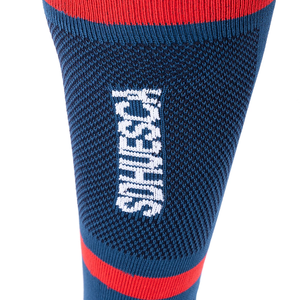 Chaussettes SD Huesca Home pour la saison 2023-2024, marque Soka. Complétez votre kit avec les chaussettes rouges et bleues assorties au reste de l'uniforme.