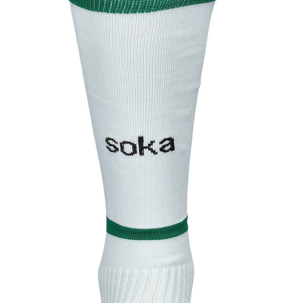 Chaussettes du kit extérieur de la Sociedad Deportiva Huesca 2024-2025 de la marque Soka en couleurIce White-Green