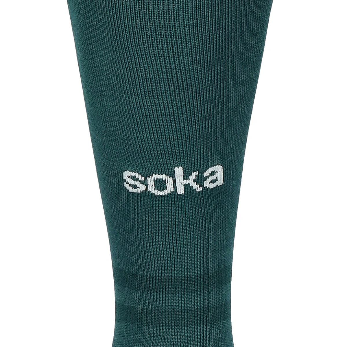 Chaussettes Sociedad Deportiva Huesca Troisième kit 2025-2026 de la marque Soka en couleur Deep Green-Basil Green-Silver.