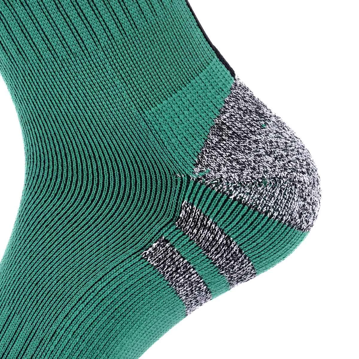 Chaussettes spéciales pour les joueurs de football. Elles sont dotées d'une voûte plantaire renforcée et d'une double éponge sur le talon et la semelle avec un fil d'asilicone antidérapant. Fabriquées en: