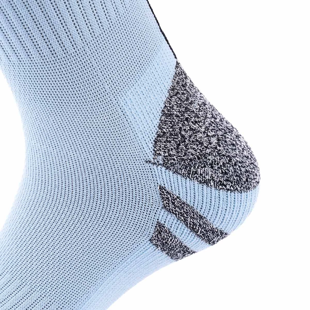 Chaussettes spéciales pour les joueurs de football. Elles sont dotées d'une voûte plantaire renforcée et d'une double éponge sur le talon et la semelle avec un fil d'asilicone antidérapant. Fabriquées en: