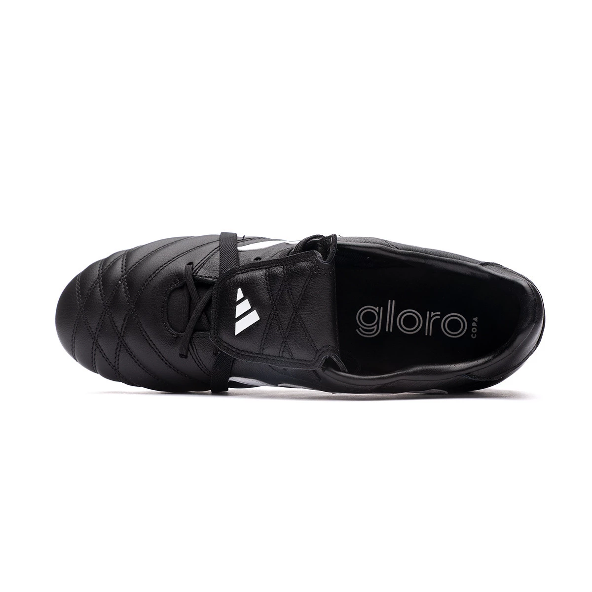 Chaussures de football adidas Copa Gloro FG. Chaussures en cuir conçues pour une utilisation sur terrains en gazon naturel. Modèle haut de gamme en coloris Core Black-White, idéal pour les joueurs au style classique.