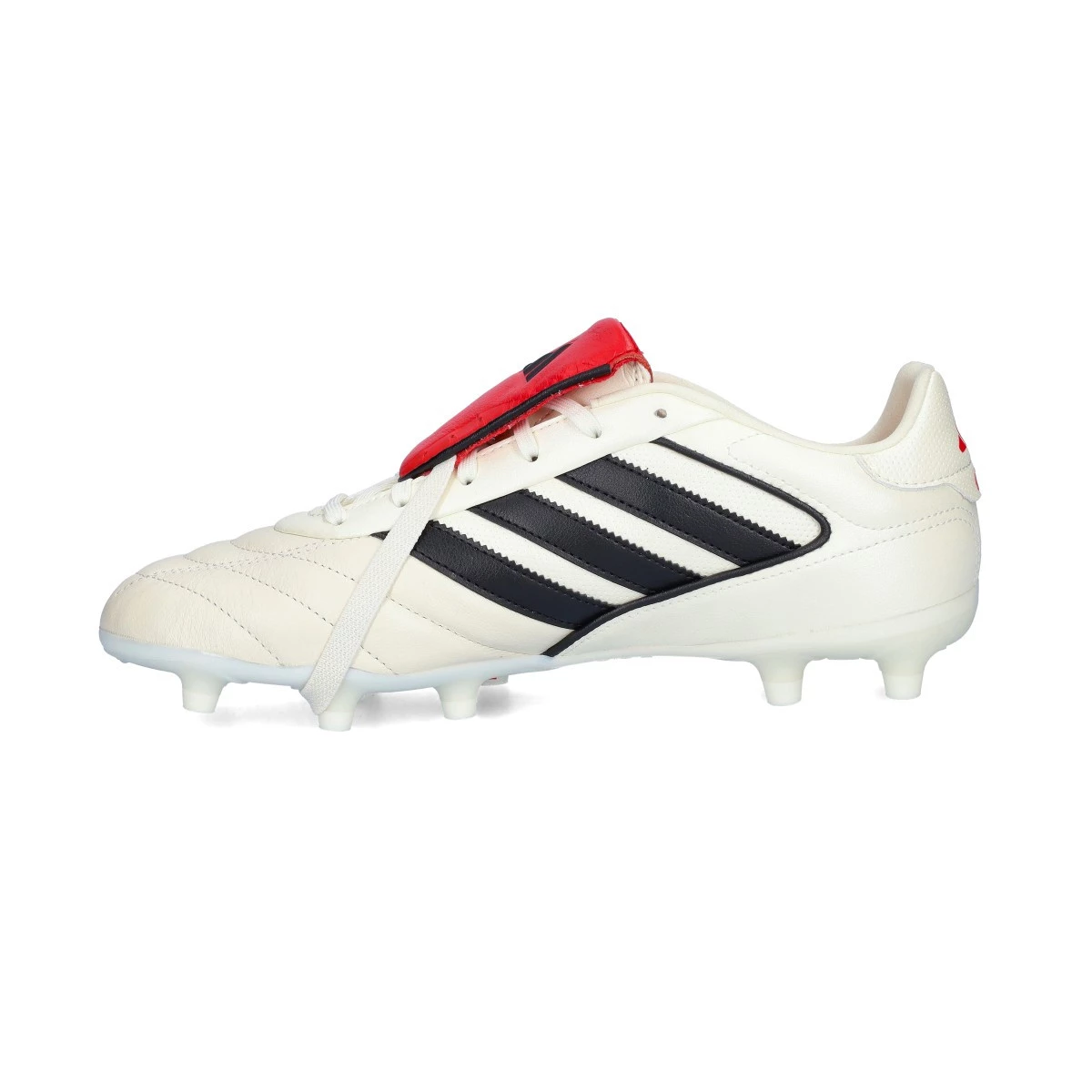Chaussures de football adidas Copa Gloro II FG pour adultes. Modèle en cuir pour les terrains en gazon naturel. Chaussures haut de gamme en blanc cassé-noir-pur rubis pour les joueurs classiques.