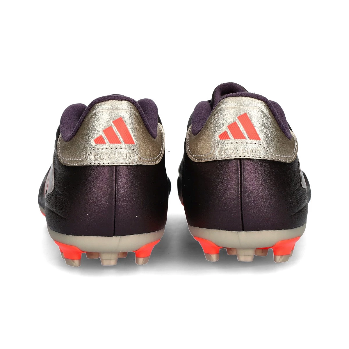 Chaussures Copa Pure 2 League 2G/3G AG d'adidas en Aurora Black-Platin Met-Turbo. Des chaussures de base pourerrains en gazon artificiel de deuxième génération.