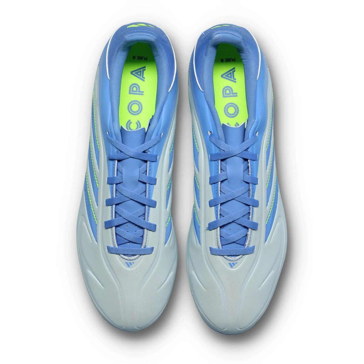 Chaussure de football Copa Pure III Club FG/MG pour adulte d'adidas. Chaussure en couleur Halo Blue-Blue Fusion-Lucid Lemon.