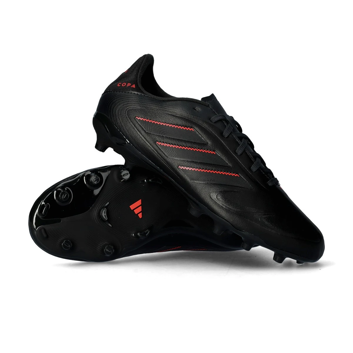 Chaussures de football adidas Copa Pure III League FG/MG. Chaussures en cuir synthétique à utiliser sur les terrains naturels et les terrains artificiels de deuxième génération. Chaussures haut de gamme en Core Black-Carbon-Lucid Red pour les joueurs classiques.