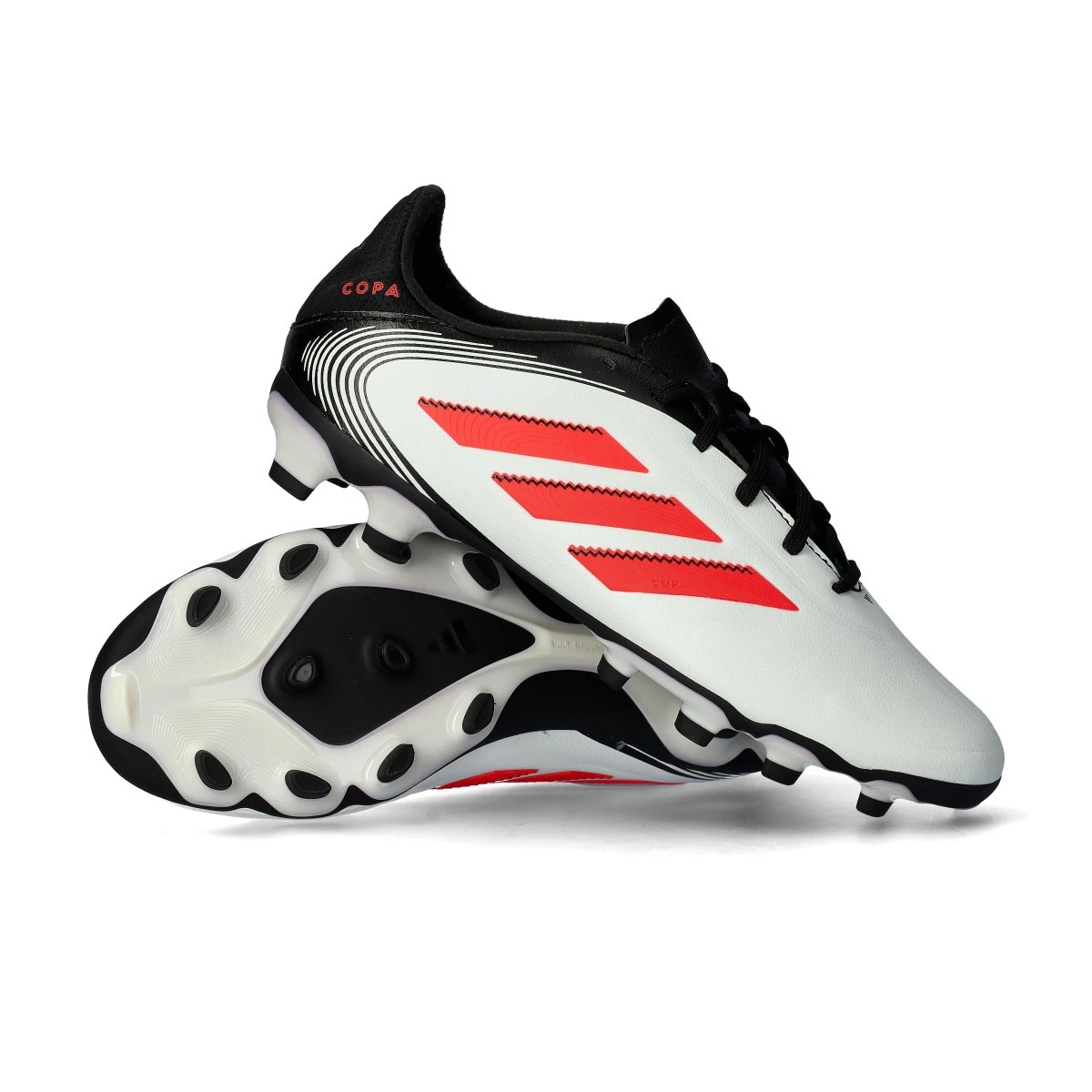 Chaussures de football pour enfants Copa Pure III League MG d'adidas, coloris Ftwr White-Lucid Red-Core Black. Chaussure de base pour les terrains en gazon artificiel et en moquette.