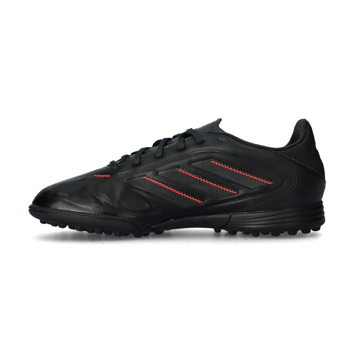 Chaussures de football Copa Pure 2 Club Turf d'adidas en coloris Core Black-Carbon-Lucid Red. Chaussure de base pour les terrains en moquette ou en gazon artificiel.