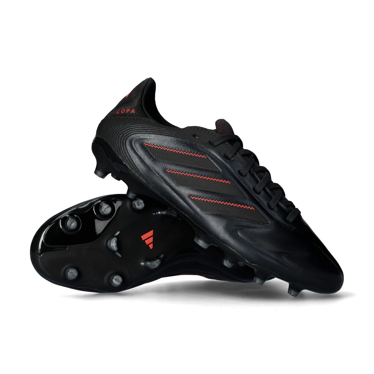Chaussures de football adidas Copa Pure III Pro FG pour adultes. Chaussures en cuir pour utilisation sur terrains en gazon naturel. Coloris Core Black-Carbon-Lucid Red.