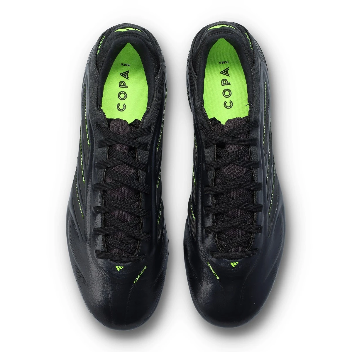 Chaussures de football adidas Copa Pure III Pro FG pour adultes. Chaussures en cuir conçues pour jouer sur terrains en gazon naturel. Modèle d’entrée de gamme en coloris Core Black-Dgh Solid Grey-Lucid Lemon.