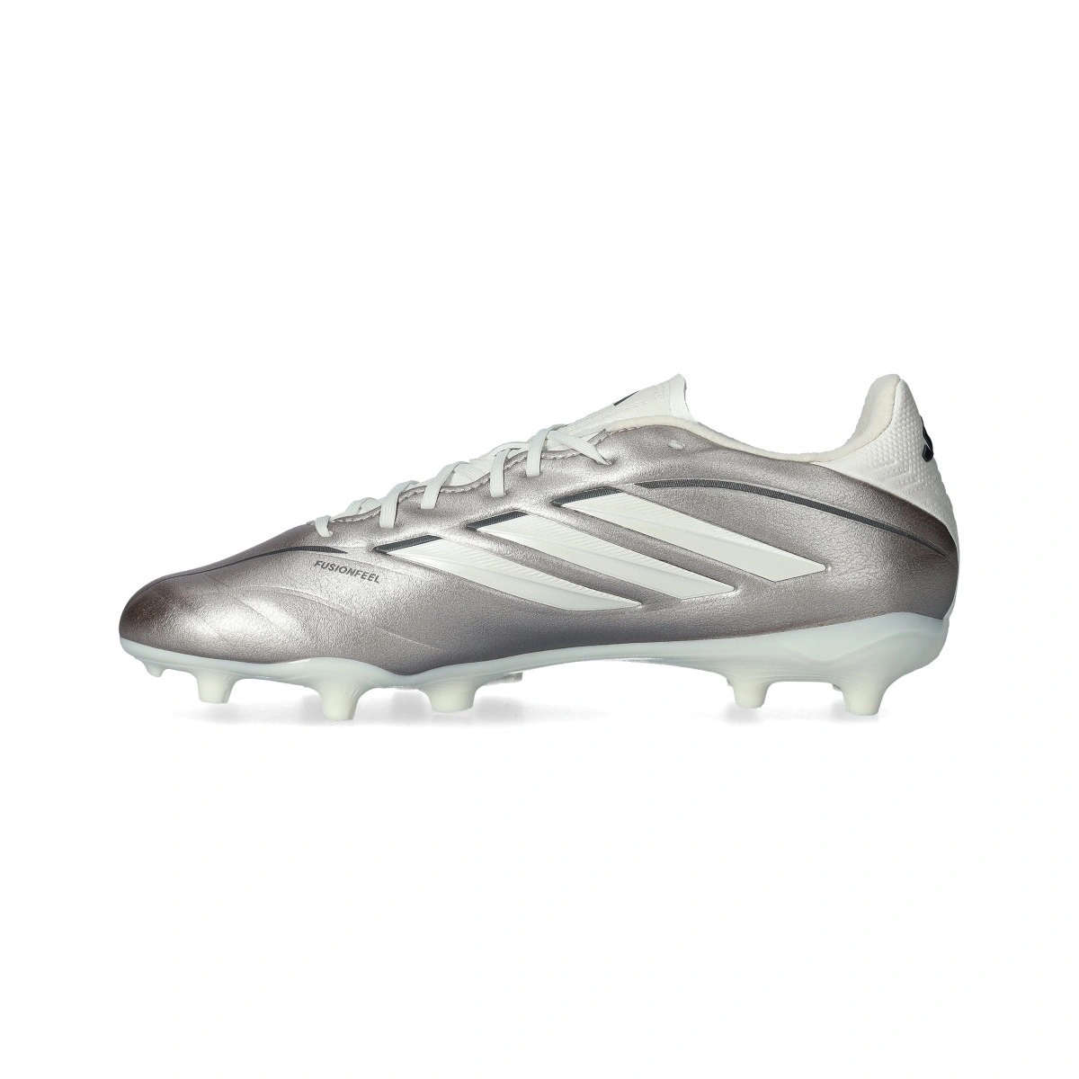 Chaussures de football adidas Copa Pure IV League FG. Chaussures en cuir synthétique pour terrains en gazon naturel. Chaussures d’entrée de gamme en couleur Taupe Met-Zero Met-Night Met pour les joueurs classiques.