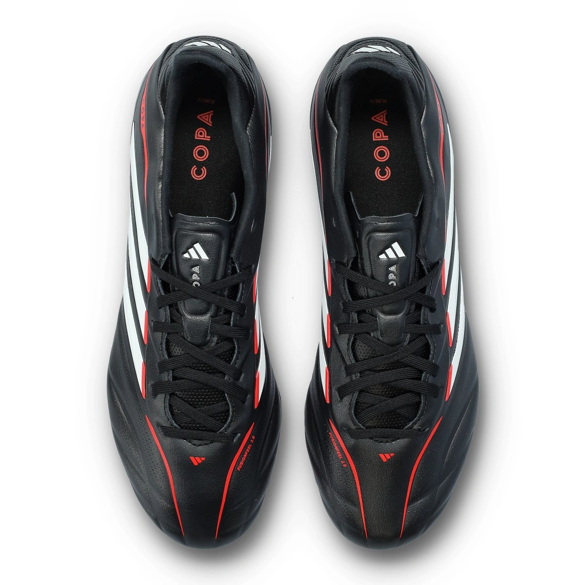 Chaussures de football adidas Copa Pure IV Pro FG pour adultes. Chaussures en cuir pour terrains en gazon naturel. Chaussures d'entrée de gamme en couleur Core Black-White-Lucid Red.