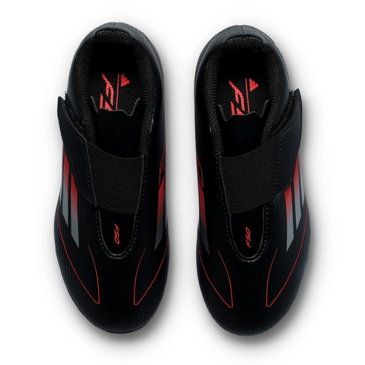 Chaussure F50 Club FG/MG Adhesive Tape Kids de la marque adidas en coloris Core Black-Iron Met-Lucid Red. Chaussure de la gamme de base pour les terrains en gazon naturel.