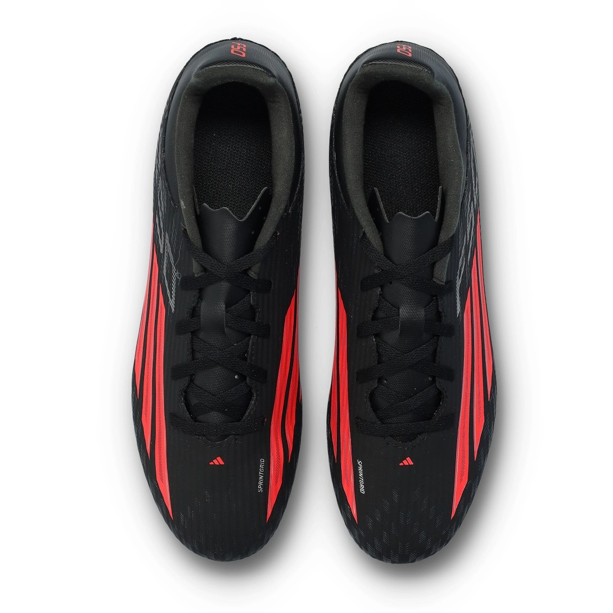 Chaussure F50 Club FG/MG de la marque adidas en couleur Core Black-Lucid Red-Core Black. Chaussure d'entrée de gamme pour terrains en gazon naturel.