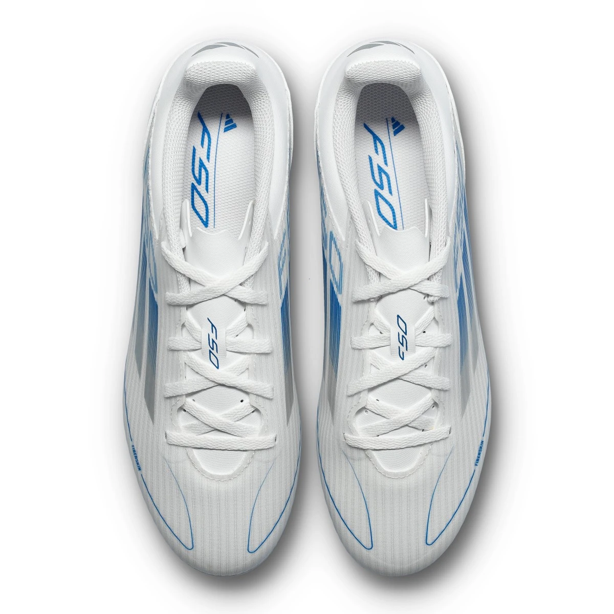 Chaussures adidas F50 Club FG/MG en White-Silver Met-White. Chaussure de base pour les terrains en gazon naturel.