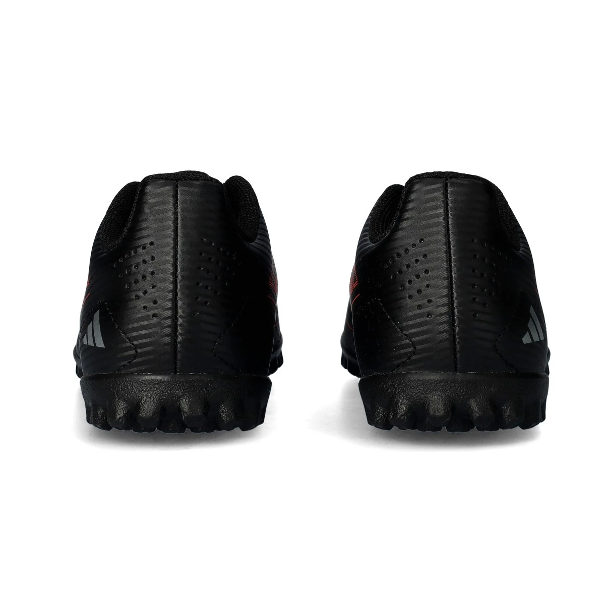 Chaussures de football F50 Club Turf pour enfants en Core Black-Iron Met-Lucid Red. Chaussure à lacets avec semelle Turf pour tapis.