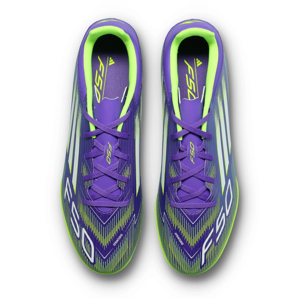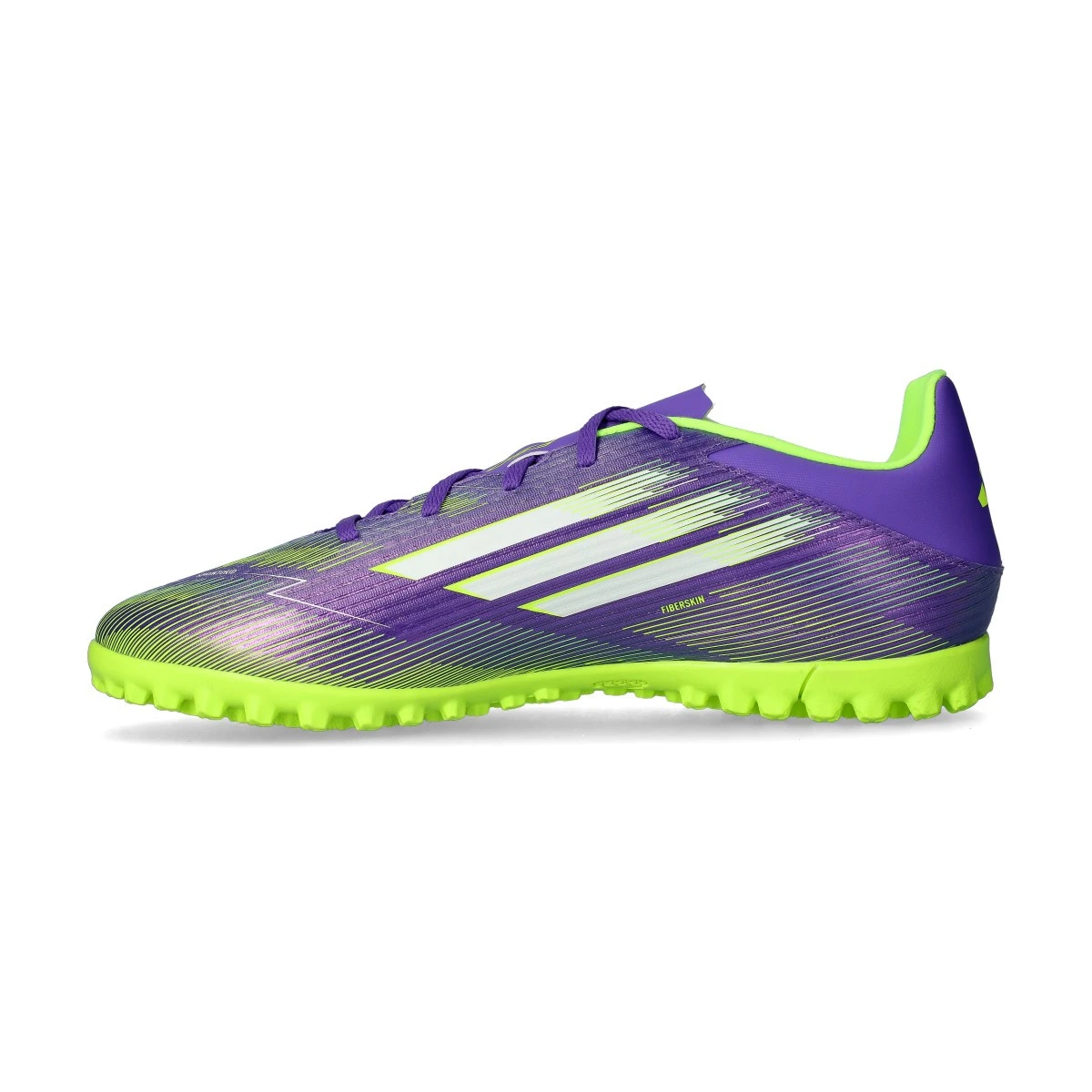 Chaussure F50 Club Turf de la marque adidas en coloris Purple Rush-White-Lucid Lemon. Chaussure d’entrée de gamme pour moquette ou terrains en gazon artificiel de deuxième génération.