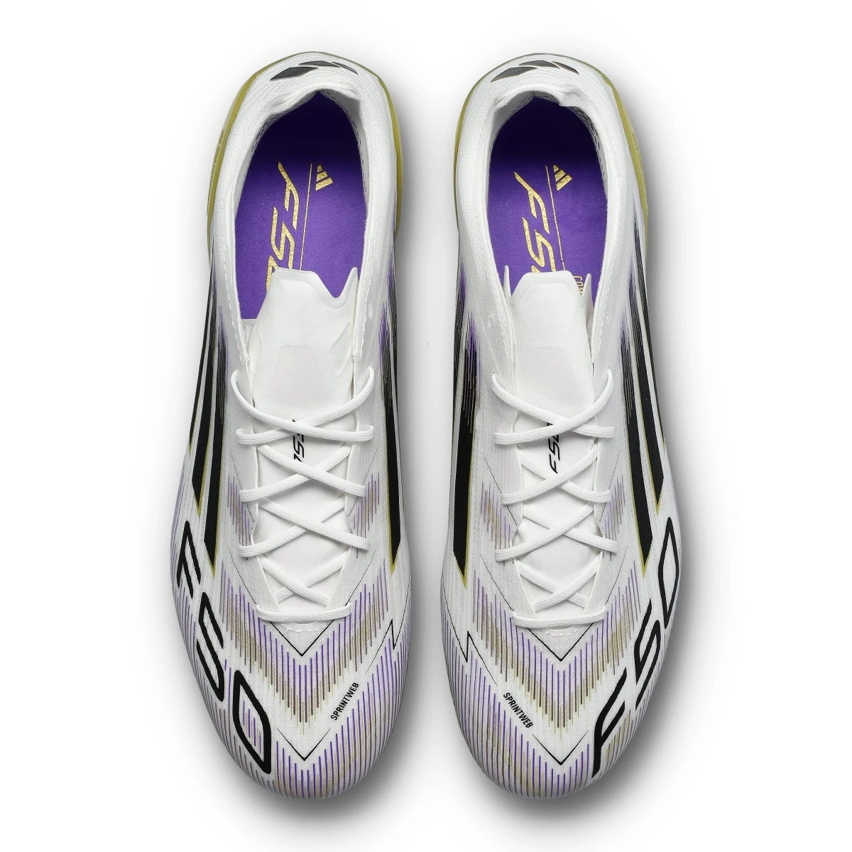 Chaussure F50 Elite AG d'adidas pour les terrains en gazon artificiel en White-Core Black-Gold Met.
