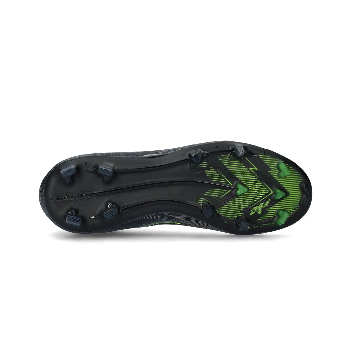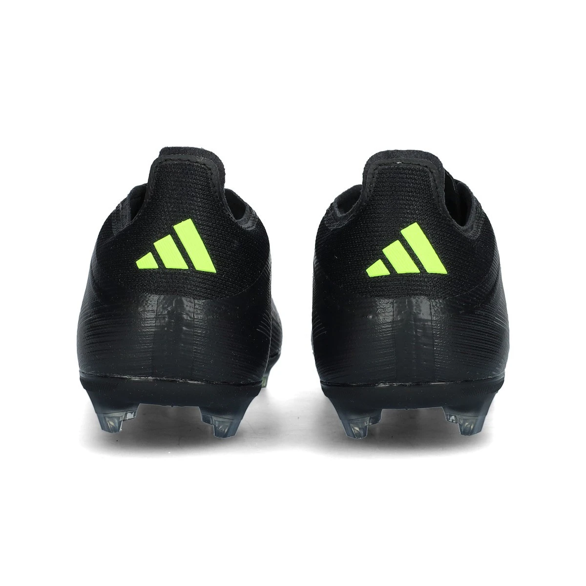 Modèle en maille avec lacets, conçu pour les terrains en gazon naturel secs ou humides. Chaussures haut de gamme dans un coloris Core Black / Iron Metallic / Lucid Lemon.