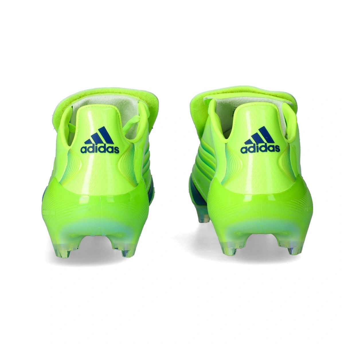 Chaussure F50 Elite FG Tunit de la marque adidas pour terrains en gazon naturel. Chaussure haut de gamme avec lacets en couleur Lucid Lemon-Team Royal Blue-Lucid Aquamarine.