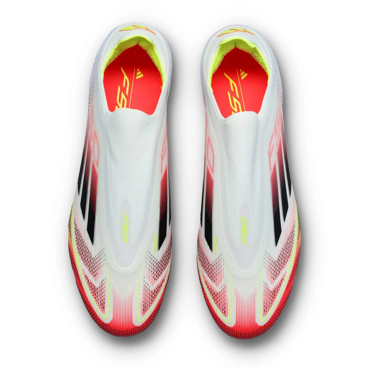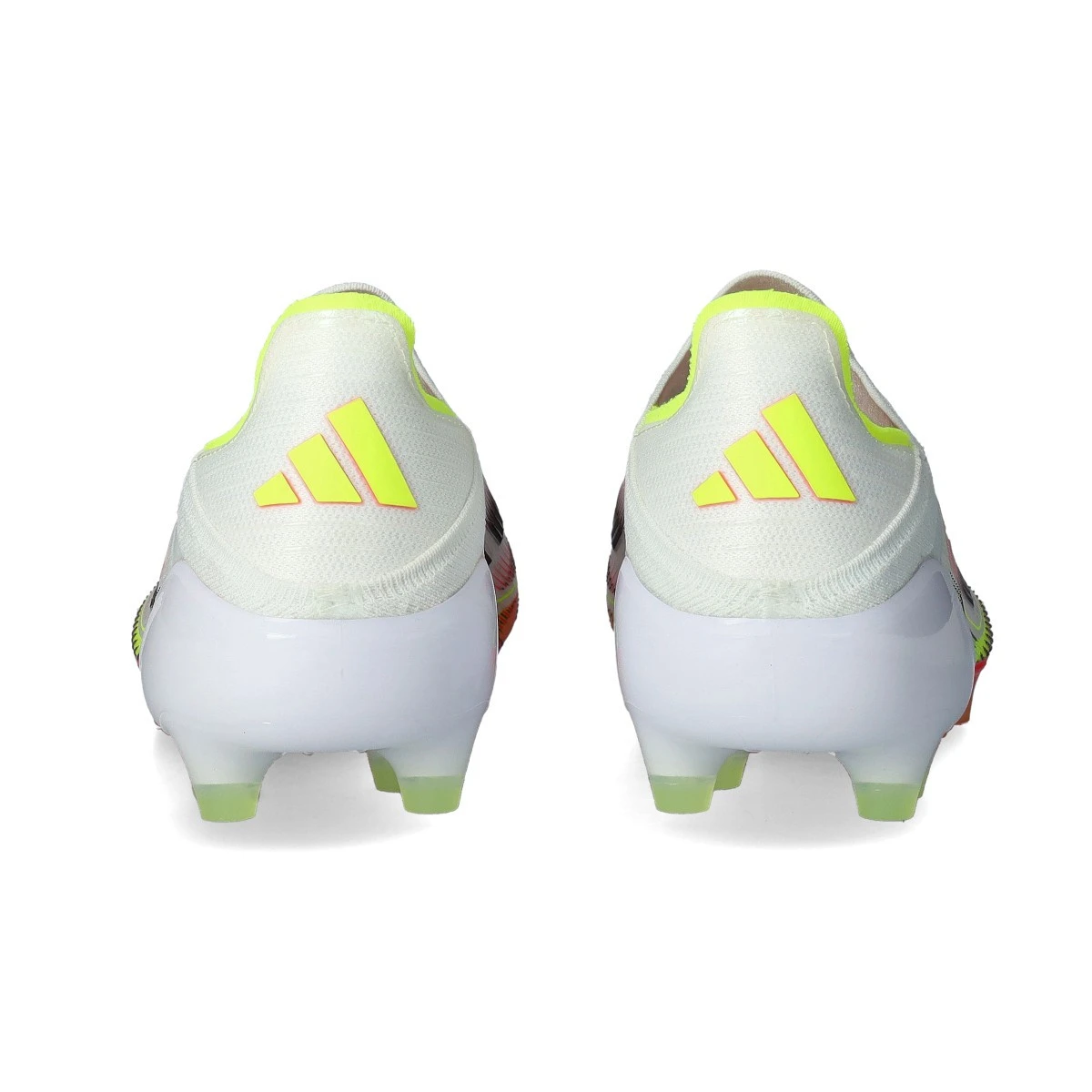 Chaussures Predator Elite LL AG d'adidas en White-Core Black-Solar Yellow. Modèles sans lacets pour les terrains en gazon artificiel.