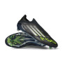 Chaussures de foot adidas F50 Elite LL FG. Chaussures en toile sans lacets, conçues pour terrains en gazon naturel secs ou humides. Chaussures de haute gamme en coloris Core Black-Iron Met-Lucid Lemon.