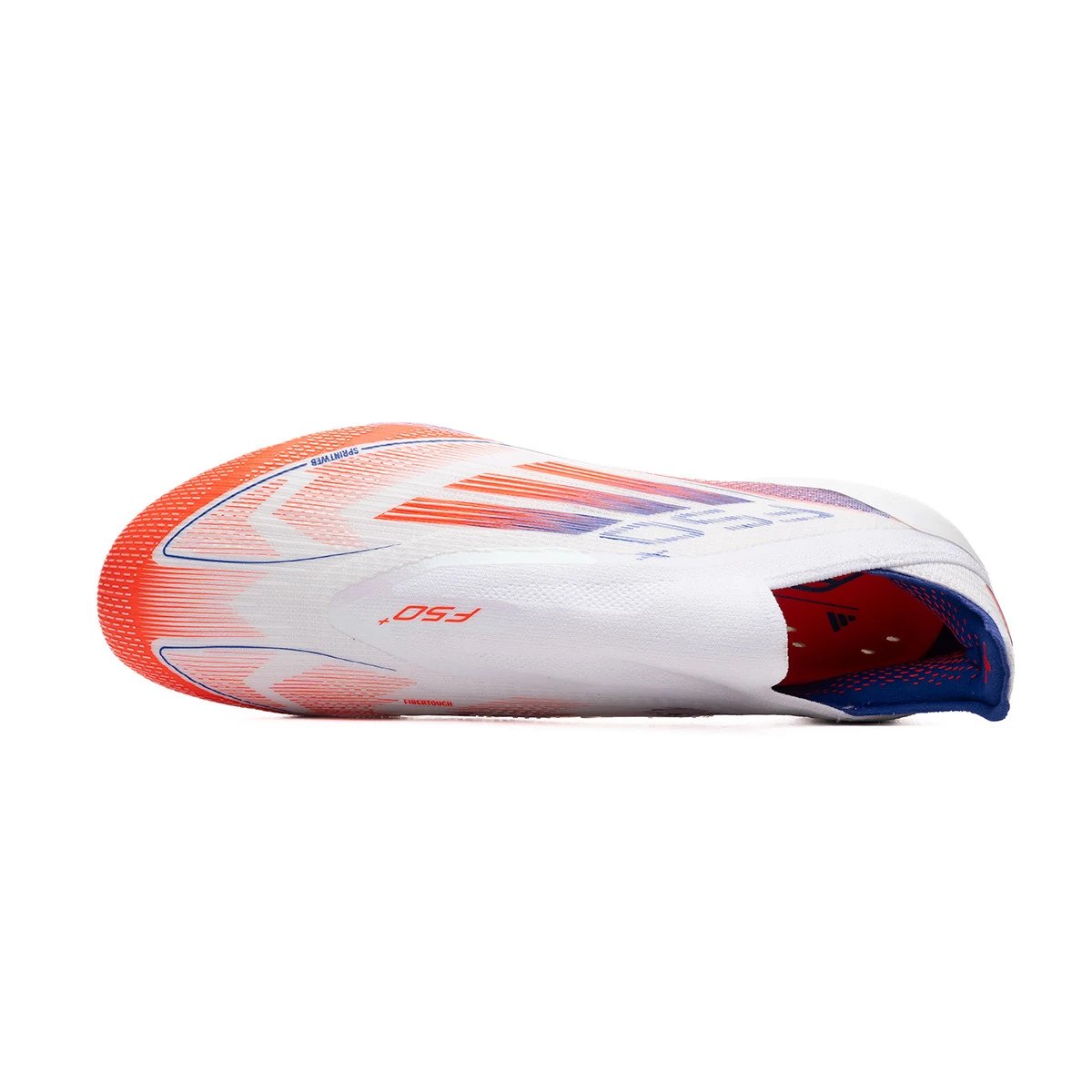 Chaussures de football adidas F50+ FG. Chaussures à lacets pour utilisation sur terrains en gazon naturel. Chaussures haut de gamme de couleur White.
