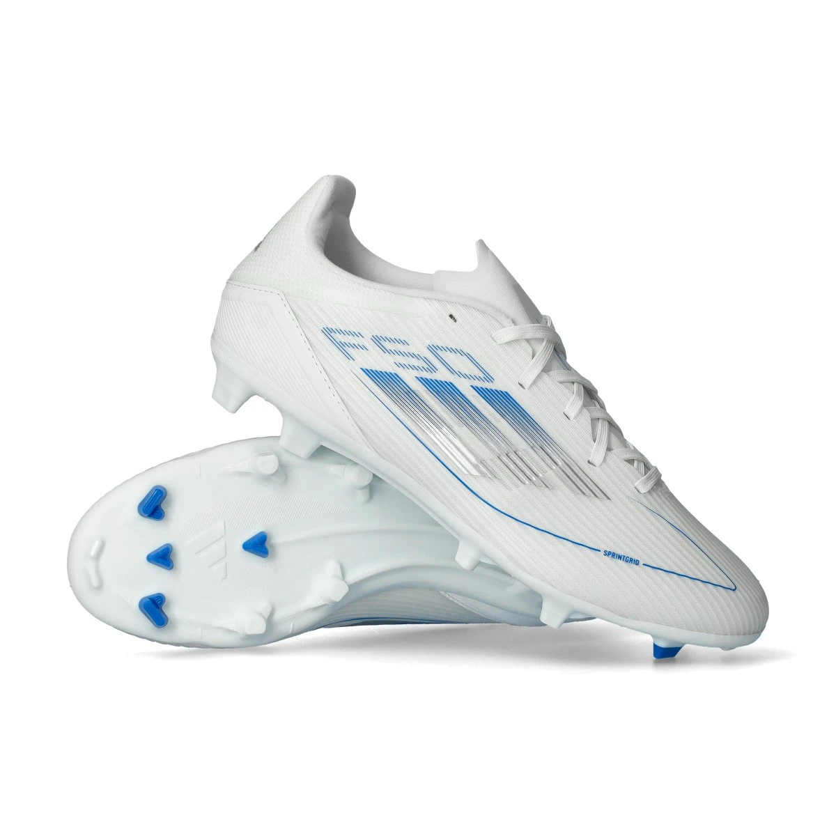 Chaussures adidas F50 League FG/MG en Ftwr White-Silver Met-Ftwr White. Chaussure de base pour les terrains en gazon naturel.