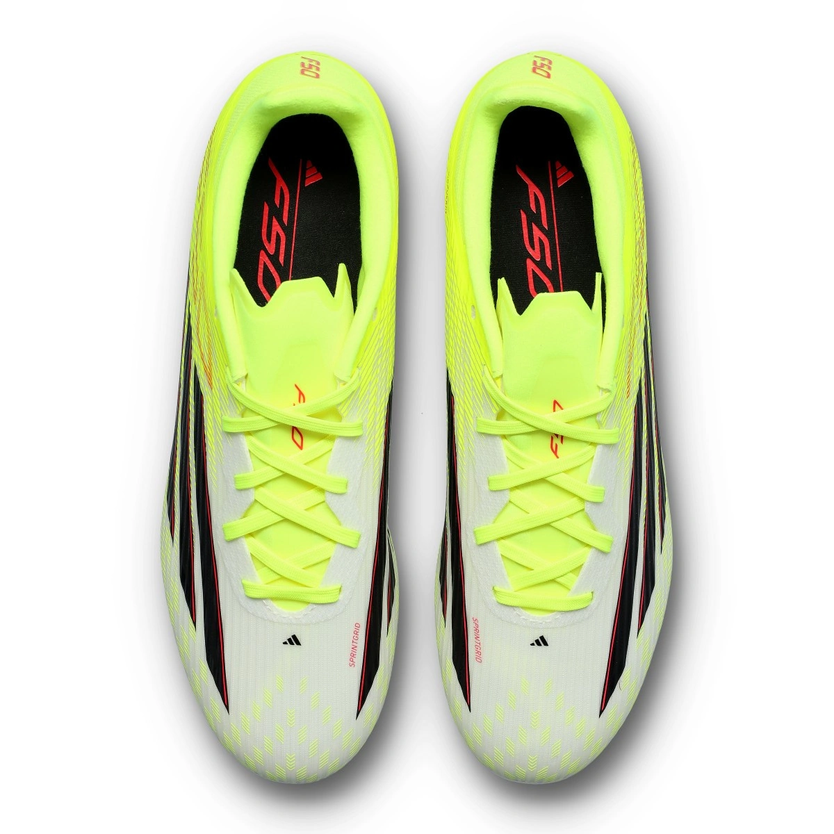 Chaussure F50 League LL FG/MG de la marque adidas en couleur Team Solar Yellow-Core Black-Lucid Red. Chaussure d'entrée de gamme avec lacets pour terrains en gazon naturel et terrains en gazon artificiel de deuxième génération.