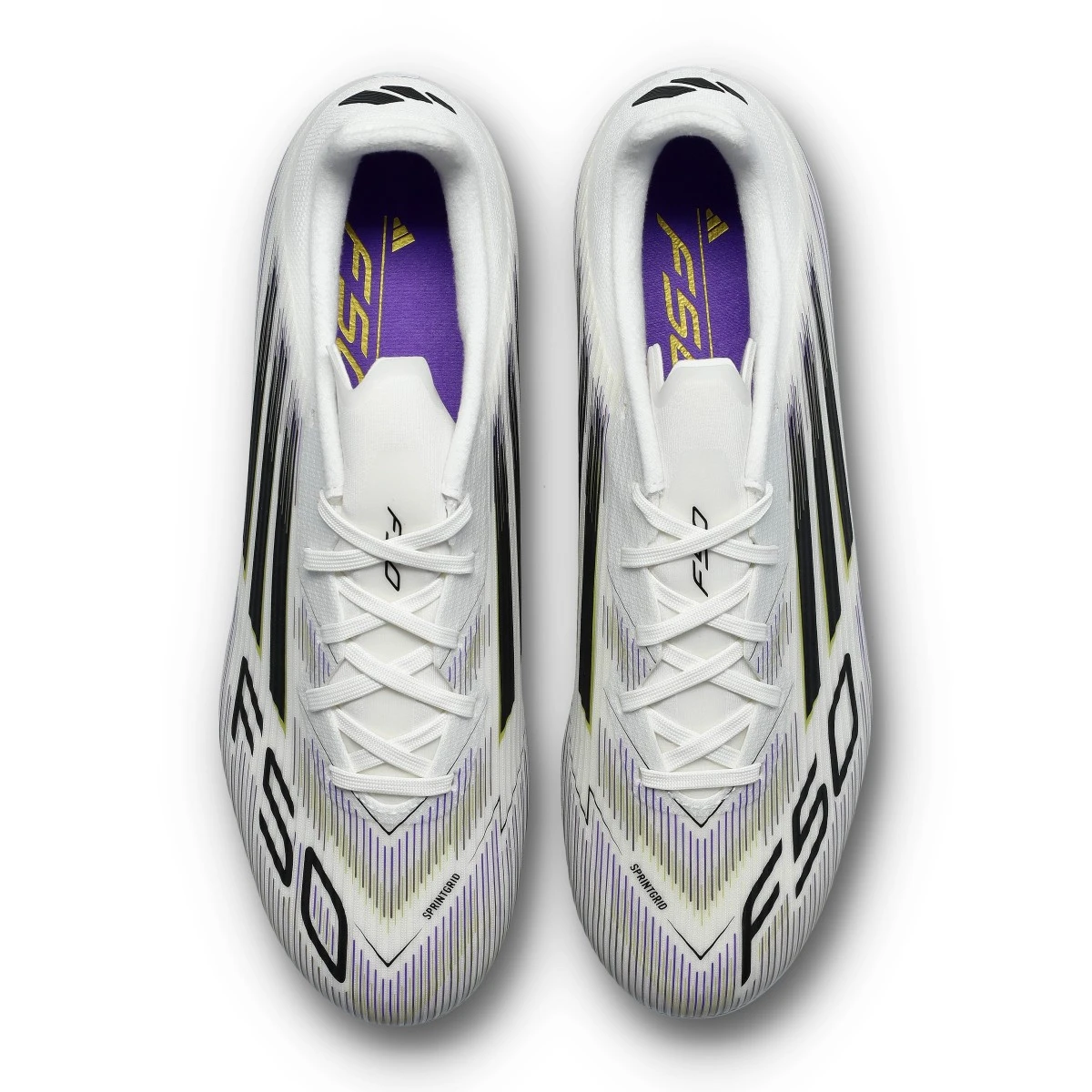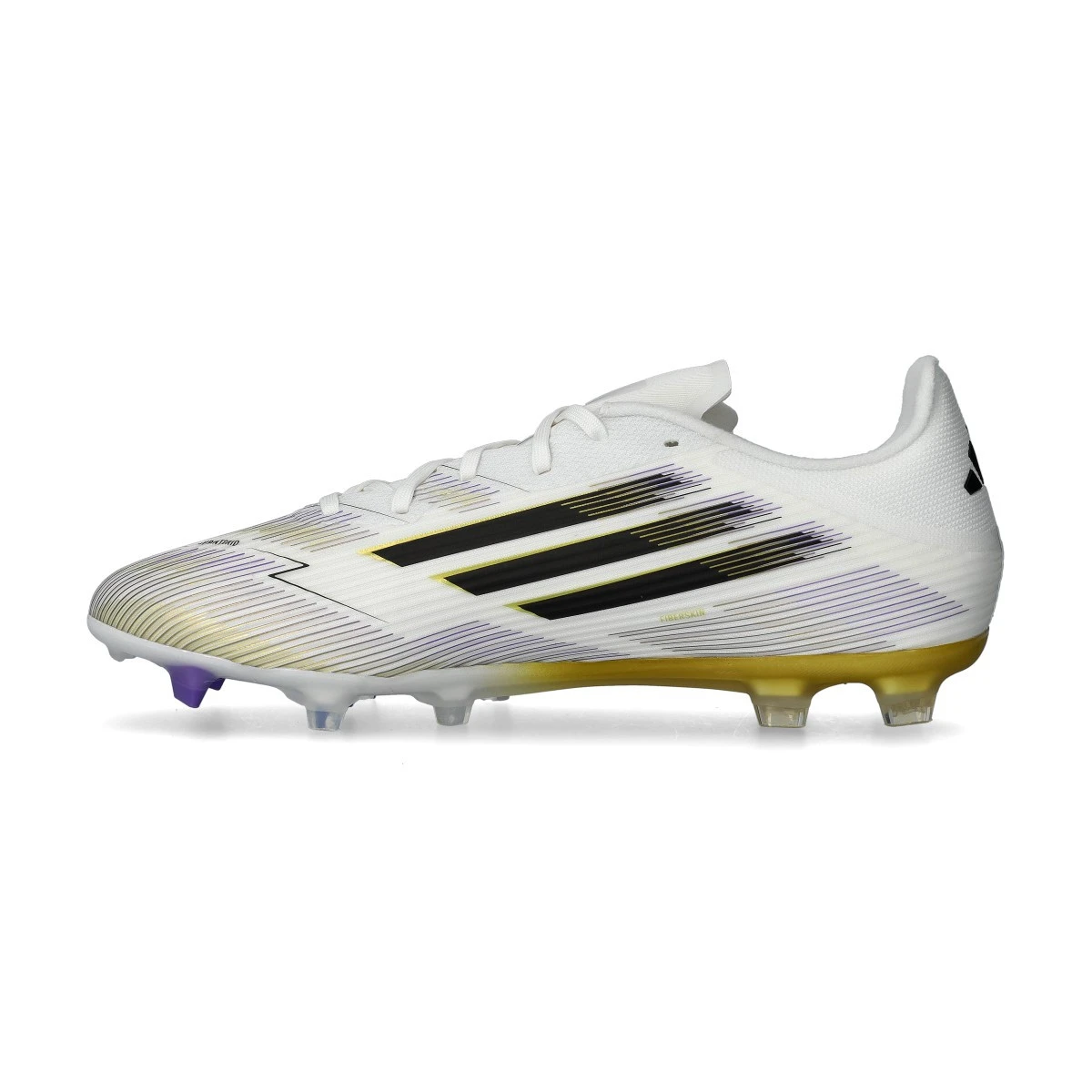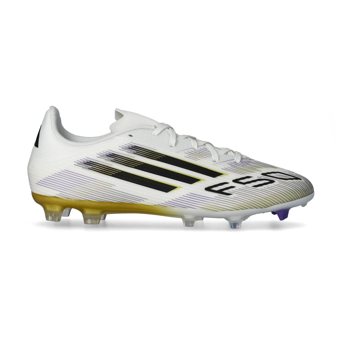 Chaussures adidas F50 League FG/MG en White-Core Black-Gold Met. Chaussure de base pour gazon naturel et artificiel de première génération.