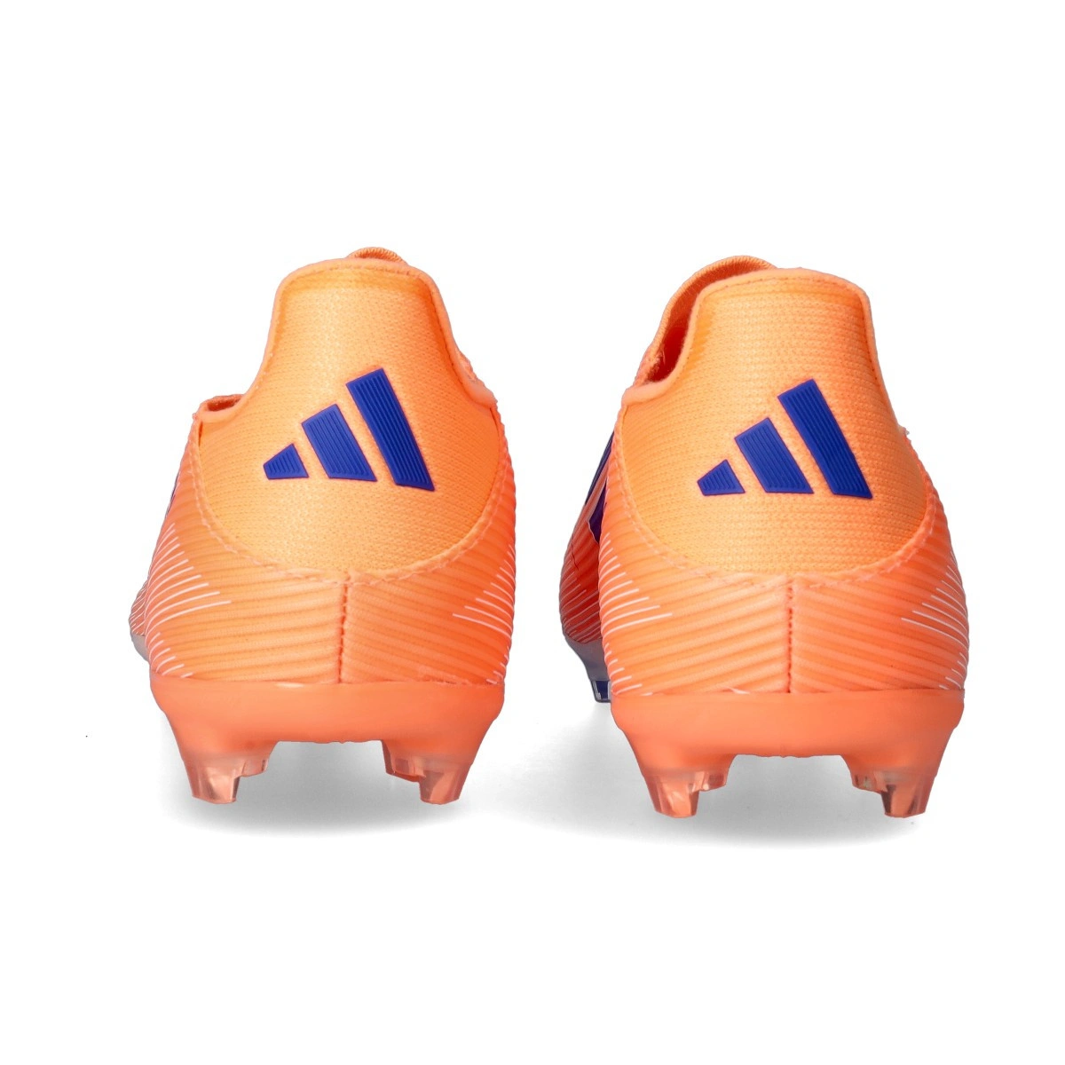 Chaussures F50 League LL FG/MG de la marque adidas, couleur Beam Orange-Lucid Blue-White. Chaussures sans lacets de gamme moyenne pour terrains en gazon naturel et terrains en gazon artificiel de deuxième génération.
