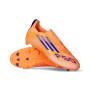 Chaussures F50 League LL FG/MG de la marque adidas, couleur Beam Orange-Lucid Blue-White, pour garçon. Chaussures sans lacets de gamme moyenne pour terrains en gazon naturel et terrains en gazon artificiel de deuxième génération.